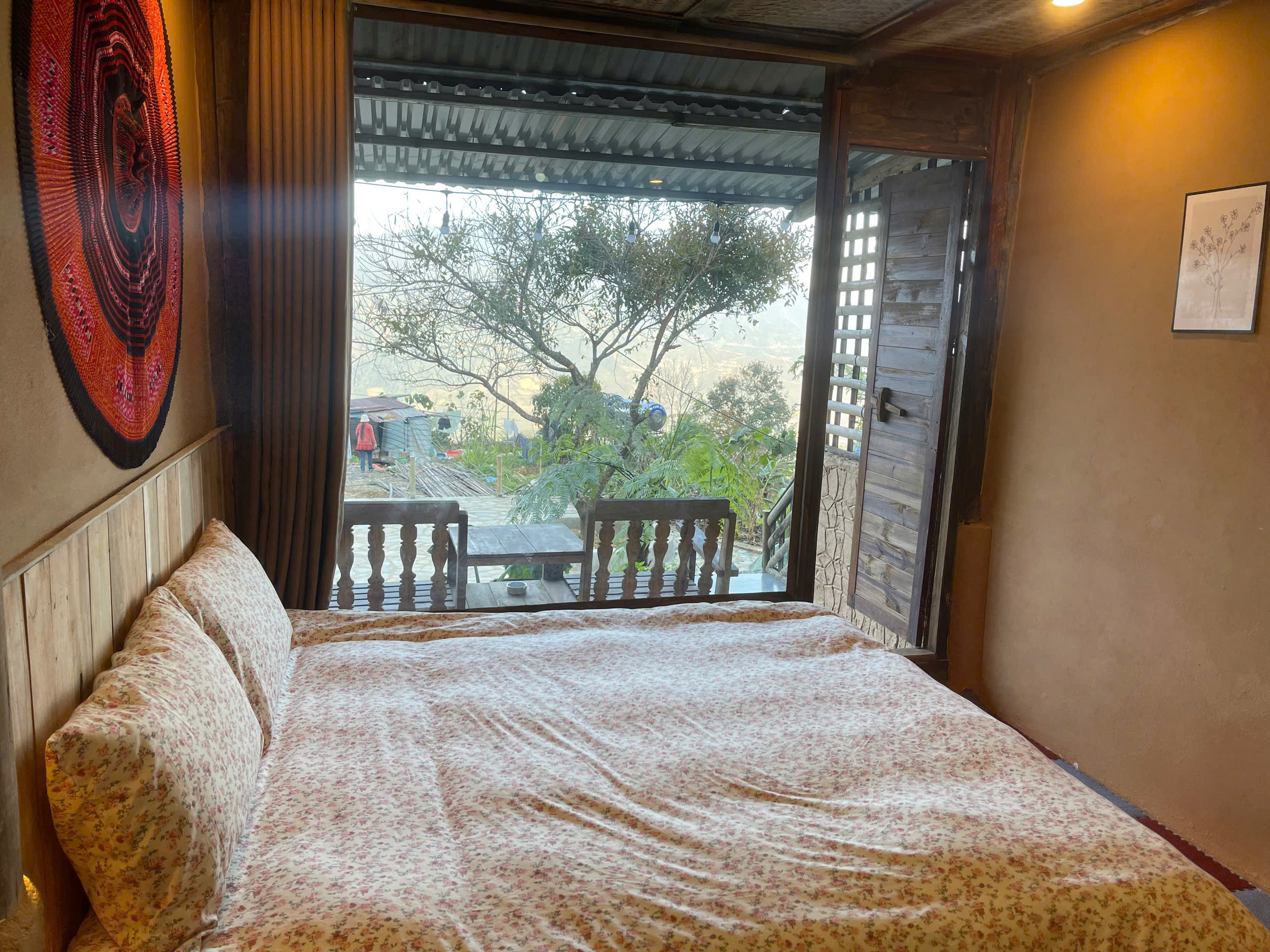 Phòng Deluxe cửa kính full view vườn và núi, nằm ở tầng 2 của căn nhà sàn. Hãy tưởng tượng vào mỗi buổi sáng, khi bình minh đang ló dạng và ngay bên dưới tầm mắt là những biển mây bồng bềnh như đang vẫy chào quý khách đến với vùng đất của mây nơi Tà Xùa này.